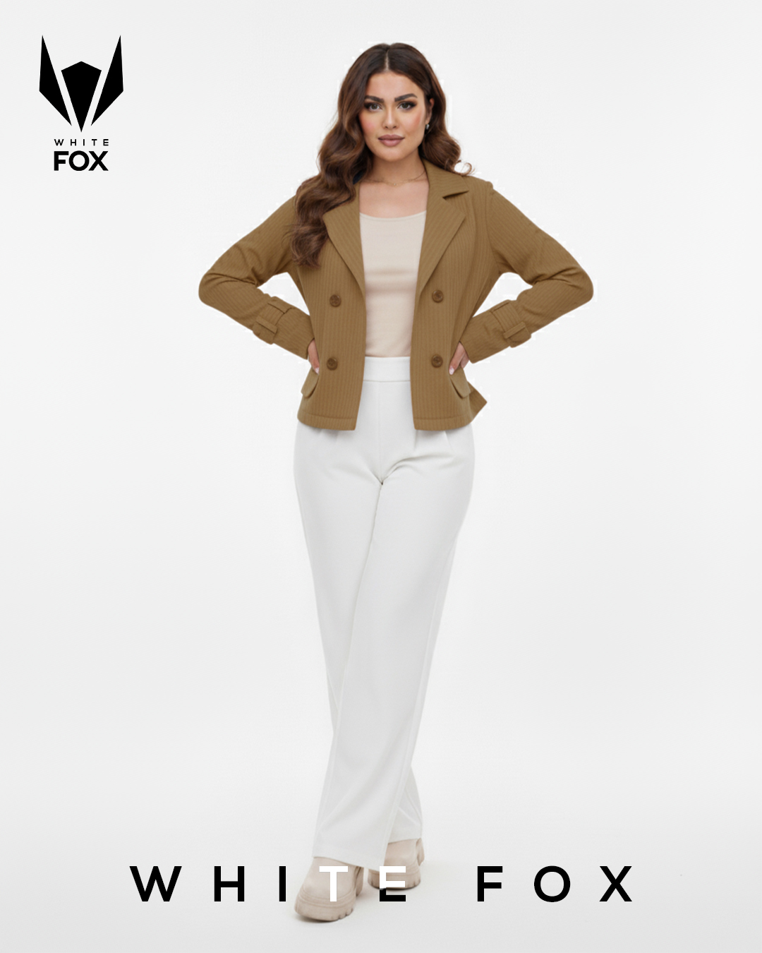 طراحی و فیت: این مدل دارای فیت کتی و برش کوتاهی (قد ۵۸ سانتیمتر) است که برای پوشیدن روی شومیز، بافت یقه اسکی یا تاپهای کراپ ایدهآل است.